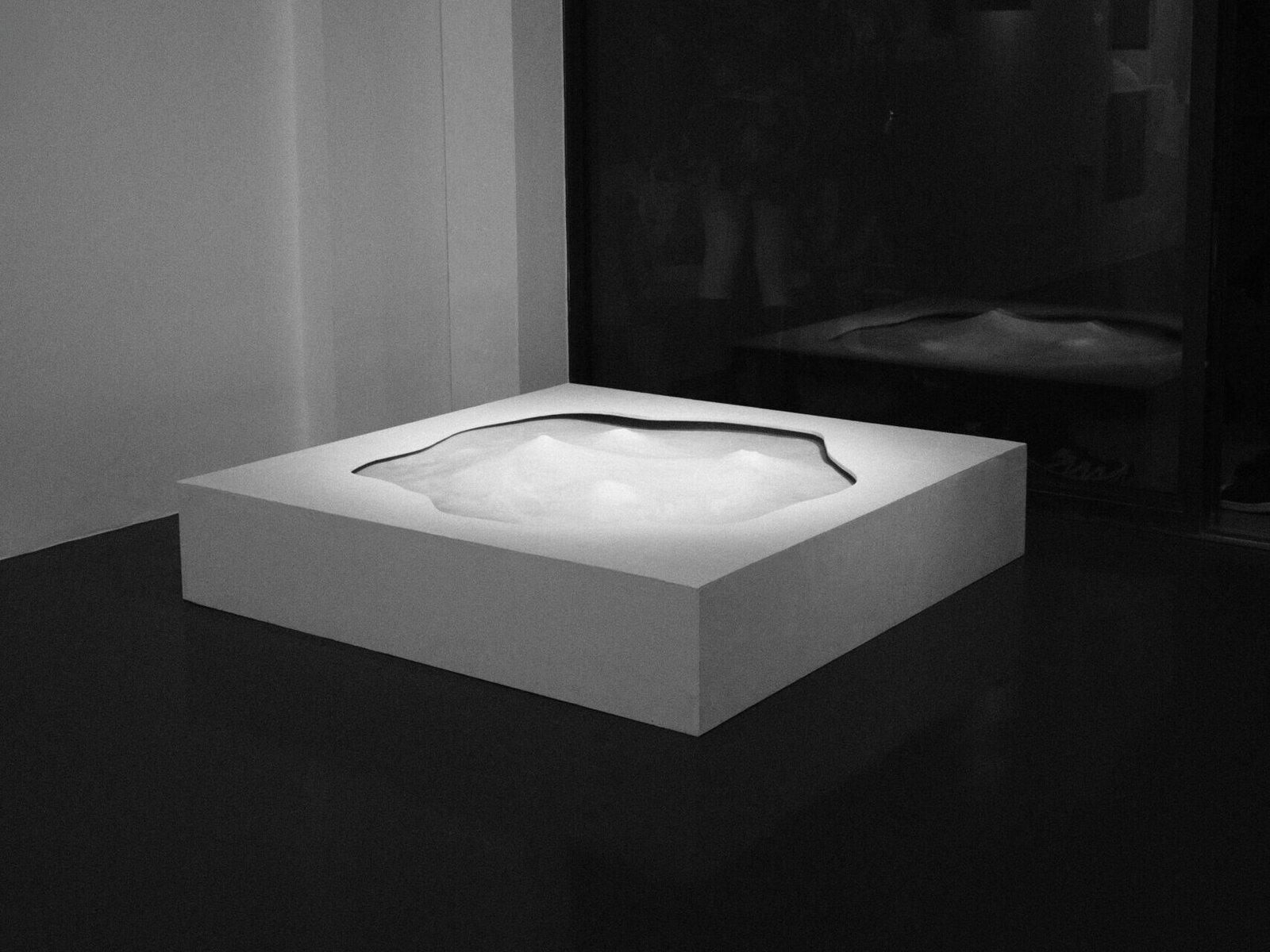 A silicone membrane, animated by a cluster of stepper motors, expands and contracts within the space. Through its movement, the membrane acts as a performative presence, subtly reorganising the spatial logic of the room, and establishing a dialogue between the audience and their surroundings.