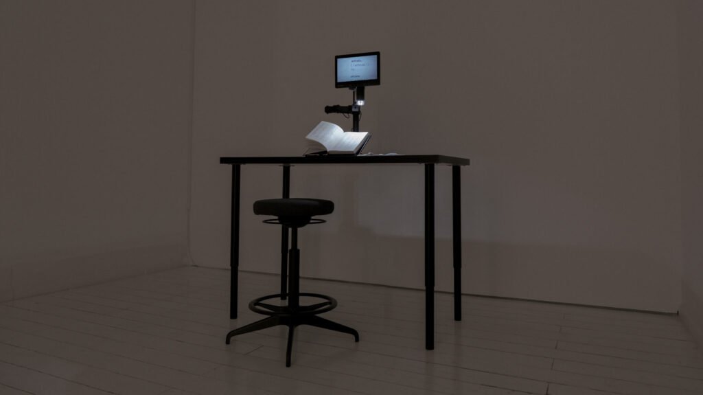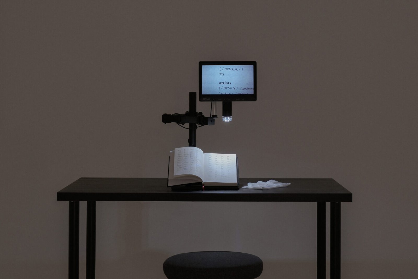 The resulting classifications are materialised as a dictionary. As a symbol of universal knowledge, it instead reveals the impossibility of true personalisation: each number exposes the model’s limits. Displayed within a clinical setting, visitors examine the book using white gloves and a digital microscope, entering a loop of scrutiny where subjective data is objectified, only to become subjective again through the viewer’s judgement.